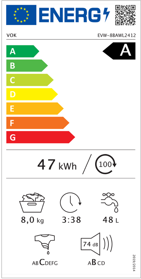 Consumo energético: 47 kWh/100 ciclos
